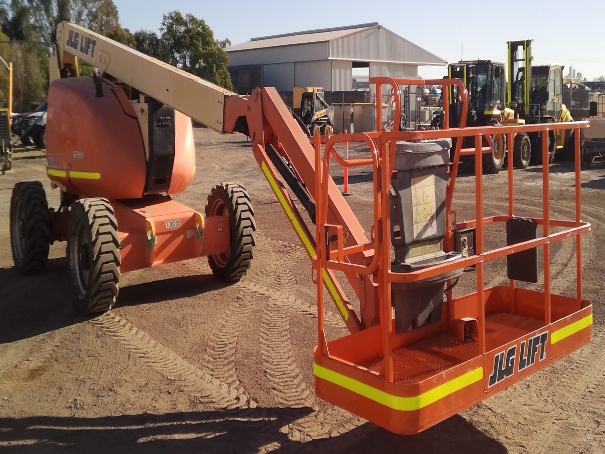The JLG 600AJ is a robust and versatile articulating boom lift designed to provide reliable access to hard-to-reach work areas, especially in outdoor and rough-terrain environments. With a platform height of 60 feet (18.3 meters) and a working height of up to 66 feet (20.1 meters), it offers excellent vertical reach, while its horizontal outreach of 39 feet 9 inches (12.1 meters) allows operators to reach over and around obstacles with ease. Equipped with a diesel engine, 4-wheel drive, and oscillating axles, the 600AJ ensures strong off-road capability and stability on uneven surfaces. The unit also includes a 5-foot jib with 130° of vertical articulation for added flexibility and precision. With a platform capacity of 230 kg (500 lbs), 360° continuous swing, and intuitive controls, the JLG 600AJ delivers the performance, reach, and control needed for tasks such as construction, maintenance, and industrial installation work.